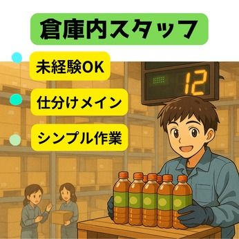 仕事内容 ■■お仕事内容■■ 常温倉庫内にて、飲料の仕分け作業および付随業務をお願いします。 ・電光掲示板の番号と出荷ラベルの照合 ・指定数量をパレットへ移動 ・出荷数量・残数量の確認 ・ラップ巻き作業 ・整理整頓、清掃 作業は手順が決まっているため、未経験の方でも安心してスタートできます。 ■■おすすめポイント■■ 【未経験OK!シンプル作業中心】 ・電光掲示板の番号確認→パレットへ移動のルーティン作業 ・難しい作業なし!物流未経験でもすぐ覚えられる ・仕分け+整理整頓などシンプルな軽作業がメイン 【安定の日勤&土日祝休み(基本)】 ・8:50~17:20の日勤固定で生活リズム安定 ・基本土日祝休みでプライベートも確保 ・長期勤務前提で安定して働ける環境 【コツコツ作業が好きな方に最適】 ・常温倉庫内での落ち着いた作業環境 ・協力しながら進めるチーム作業 ・整理整頓・ラップ巻きなど体を動かす軽作業中心