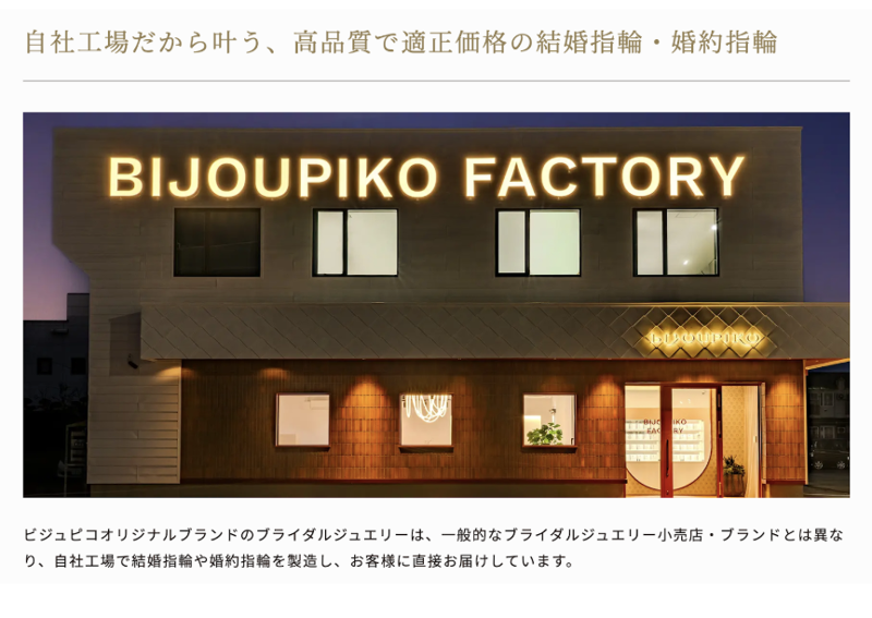 アピールポイント: ✅BIJOUPIKOグループについて✅ 日本最大級のブライダルリングのセレクトショップです。 ♦︎国内最大級のセレクトショップ 最大約120ブランド、6,000種類以上の圧倒的な品揃え。 「ここに来れば、運命のリングに必ず出会える」自信があります✨ ♦︎自社工場あり セレクトショップでありながら自社工場を保有。 中間コストを抑えた「適正価格」と「高品質」を両立しており、お客様に心から納得感のある提案ができます✨ ♦︎3年連続売上130%以上の急成長 ブライダルジュエリーのみならず、資産保全(ダイヤモンド・金)や高級時計、手作りリング事業なども行なっております。 10年連続赤字なしの極めて安定した経営基盤です。 ✼┈┈┈┈┈┈┈┈┈┈┈┈┈┈┈┈┈┈┈┈┈┈┈✼