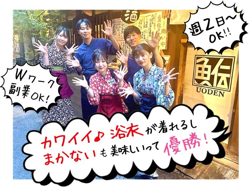仕事内容 \ おいしい魚料理とお酒が自慢 / <ホールスタッフ> *お席へのご案内 *オーダー確認 ハンディで取るので 操作はスマホ感覚で楽らく♪ *お料理提供 *ドリンク作成 最初は先輩が一対一で付いてくれるので わからないこともすぐに聞ける環境です。 優しいお客様ばかりなので失敗しても 『頑張りや!』と応援してくれます! どこでも通用する接遇マナーが身につきます。 お客様へ「お・も・て・な・し」の心を 大切にゆっくりと学んでいきましょう! お母さんみたいに優しい女将さんや 兄貴肌で優しい料理長、 盛り上げ番長の先輩など 個性豊かな先輩たちが、楽しく丁寧に 教えるのでご安心くださいね! <営業時間> 【平日】17:00~24:00 【土日祝】16:00~24:00 週2日・3日~勤務OK! 1日3時間・4時間の短時間ワークもOK! もちろんフルタイムも大歓迎です。 シフトも柔軟なので学業や 私生活とも合わせやすい!と好評です。 お気軽にご相談くださいね。 ※「魚伝」から徒歩1分の 姉妹店「芯」での業務もあり。 =================== <裏なんば酒場 魚伝ってこんなところ> おいしい「魚」とお料理を「伝える」 今注目のエリアにある隠れ家のようなお店 入口はあえて小さめにワクワク感があり! 写真見たらわかる!スタッフみんな仲良し ⭐ かわいい制服もあり! 女性は上下で分かれる浴衣なので 慣れたら3分で着れるようになります! 男性は上に羽織るだけ! ⭐ 絶品まかないはなんと無料!! 3~5種類から選べて、毎日変わる! ”アクアパッツァ”や”韓国冷麺”など 和食だけでなくスタッフからの リクエストで決まることも! =================== << 当店スタッフは特典が満載! >> スタッフはアルバイトも社員も全員が 家族のように大切な存在!! *お誕生日にはバースデープレートを 用意してみんなでお祝い! *スタッフ全員で温泉旅行へGO! もちろんアルバイトも含め全員! 有馬温泉でゆっくり楽しみました。 10周年の今年は沖縄に行ってきます! *staffのご家族や友人も大切にします! 「いつも頑張ってくれるスタッフの ご家族ごと大事にしたい!」 そんなオーナーの思いから、 家族・友人がご来店の際はサービスが! =================== << こんな方が活躍中! >> フルタイムでがっつり稼ぎたいフリーター 副業やWワーク、かけもちで働く方 プライベートも充実させながら働きたい方 長く働き続けたい方 20代・30代・40代・50代・60代 若手・中高年・ミドル世代 友達と同じシフトで働く学生 親子や兄弟、姉妹で一緒に働く方 性別・年齢・経験一切問いません! どんな方でもお待ちしております! ===================