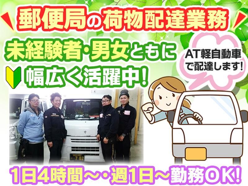 仕事内容 軽自動車を使用して、郵便物をエリア内のルートを回って配達するお仕事です。 未経験の方でも大丈夫! 「配送のお仕事したことない…」「アルバイトやお仕事の経験が少ない…」「お仕事のブランクあるけど大丈夫かな…」 そんな方も大歓迎。お気軽にご応募下さい◎ 【未経験でも活躍できる環境です】 ほとんどのスタッフが未経験からスタートです。 配送の経験がなくてもOK。 はじめは研修もしっかりありますし、まずは先輩の隣に座ってお仕事覚えてもらうので安心。 また、困ったときは先輩スタッフがしっかりフォローします。 はじめての方も、ブランクがある方もあなたのペースで始められます。