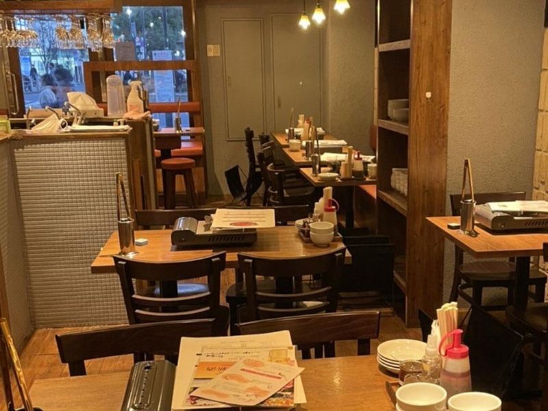 ランチタイムのホルモン焼肉店のホールスタッフ