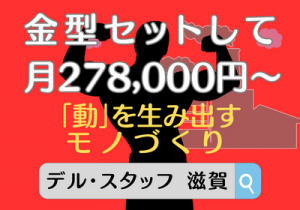 選考手順 1)応募 Web応募は24時間受付中 「応募」ボタンをクリック または、お電話で下記フリーダイヤルから ■フリーダイヤル 0120-932-072 (携帯・スマホからもOK) 2)面談の日程調整 担当者より日程・場所のご連絡をいたします 3)面談 *履歴書の持参不要です お仕事の詳細を説明します。出張面談OK! 4)入社決定 すぐに働きたい方も、来月スタート希望の方もご相談ください! 【求人をご覧いただきありがとうございます】 当社は、スタッフ一人ひとりのライフスタイルに合わせたお仕事を提供する人材サービス会社です。 「人との関わり」を大切に、未経験・無資格の方も全力でサポートします! ▼ご紹介しているお仕事 ・製造業(組立・検査・軽作業・機械オペ・溶接) ・物流(フォークリフト・ピッキング・仕分け) ・屋外の農場サポートや工場サポート事務 ・モクモク作業や短期・季節限定のお仕事もあり 関西エリア中心に、幅広い職種をご紹介! ▼働き方は自由自在! 日勤・夜勤・時短・フルタイムなど柔軟に対応 ▼充実の職場環境 当社では、働く方の自由や快適さを大切にした職場づくりを行っています。 お仕事によっては髪型・髪色自由やピアスや髭もOKの職場も。 自分らしいスタイルで働ける環境を探せます。 冷暖房完備の職場環境で、休憩スペースも個人ロッカーも完備 リフレッシュしながら快適に働いていただけます。 通勤もラクラク!駅チカの職場をはじめ、自転車・徒歩通勤も可能。 もちろん転勤はありません! 地元で安定して働きたい方にもピッタリです。 ▼安心の待遇 給与や福利厚生も安心の内容です。 高時給・昇給制度ありで、頑張りをしっかり評価する給与体系。 残業代は全額支給、交通費も支給されるので安心して勤務できます。 充実した福利厚生で製造系はじめてさんでも安心してお仕事スタートできます。 さらに、スマホから申請できる週払い制度で、急な出費にも対応可能です。 ライフイベントに合わせた働き方もサポート。 産休・育休の取得実績があり、有給休暇や介護休暇も取得可能です。 また、履歴書の事前準備なしで応募OKなので、気軽に新しい一歩を踏み出していただけます。 あなたにぴったりの働き方を、当社が全力でサポートします! まずはお気軽にご相談ください! 面接地 ◇出張面接承り中◇ ご指定の場所へスタッフがうかがいます。 ご都合のよい場所をご指定ください! すぐ入社できなくてもOK! まずはご相談ください! ■株式会社デル・スタッフ 滋賀営業所 滋賀県栗東市安養寺6-1-44 エフアイビル2階B号室 栗東市役所すぐそば 電話:0120-932-072 ご相談・ご質問のみもOK!お気軽にお問い合わせください。
