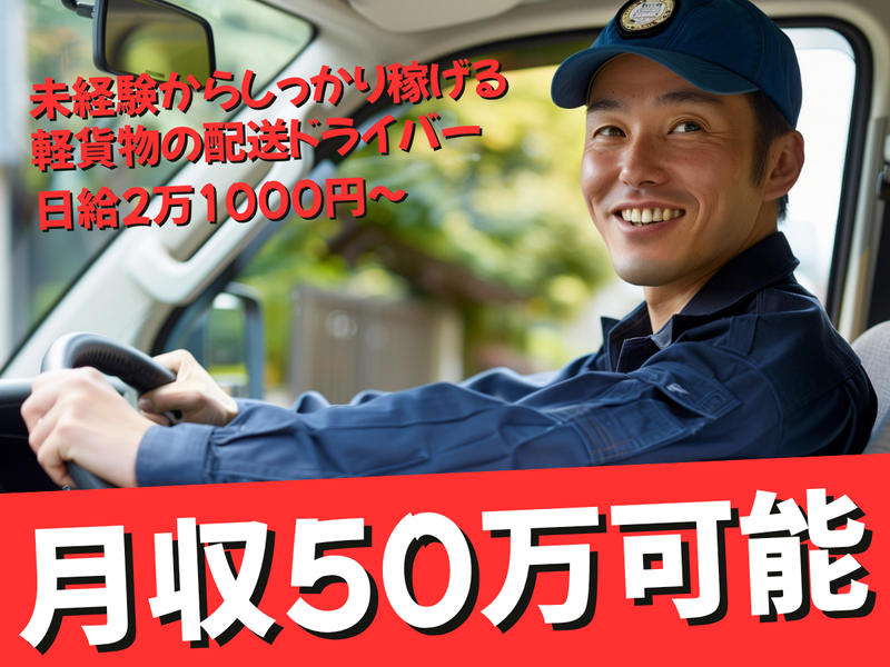 仕事内容 未経験歓迎/直行直帰/服装自由 同乗研修で専門スタッフがしっかりサポート ✨日給2万1000円でしっかり稼げる!! 月収50万以上も可能!! ✨普通運転免許があればOK!! ◣ 仕事内容 ◥  ̄ ̄ ̄ ̄ ̄ ̄ ̄ 軽自動車や軽バンで軽貨物の配送業務 片手で持てる荷物から 台車を使うものなどもありますが、 しっかりとサポートしますので、 よろしくお願いいたします。 ◣ 充実のサポート◥  ̄ ̄ ̄ ̄ ̄ ̄ ̄ ̄ ̄ ̄ ①仕事量豊富!! 30万稼ぎたい!50万以上目指したい など、お気軽に相談下さい! 30名以上のドライバーが在籍 月収45万以上稼ぐ方が多数!! ②免許があればOK! 未経験の方もしっかりとサポート! 個人事業主って少し不安、、。 そんな心配はいりません!! ③万が一の保険加入 安心して働けます ドライバー経験がなくてもOKです! 配送業務未経験の方も大歓迎✨ 未経験から始めた多くの先輩たちが サポートしてくれる アットホームな雰囲気です。 ――――――――――――――――――