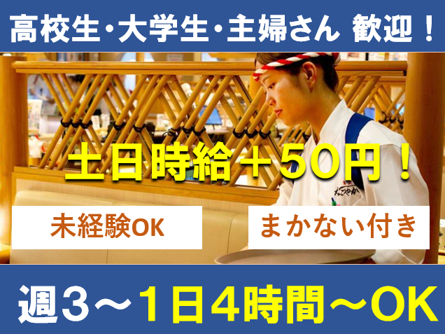 【土日時給+50円】高校生~主婦さんまで活躍中!まかない付き