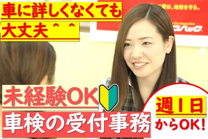 【アピールポイント】 車検の受付事務(フロントスタッフ)募集! ●未経験OK! ●車に詳しくなくてもOK! ●週1日からOK! ●パソコンが苦手な方でも大丈夫です!