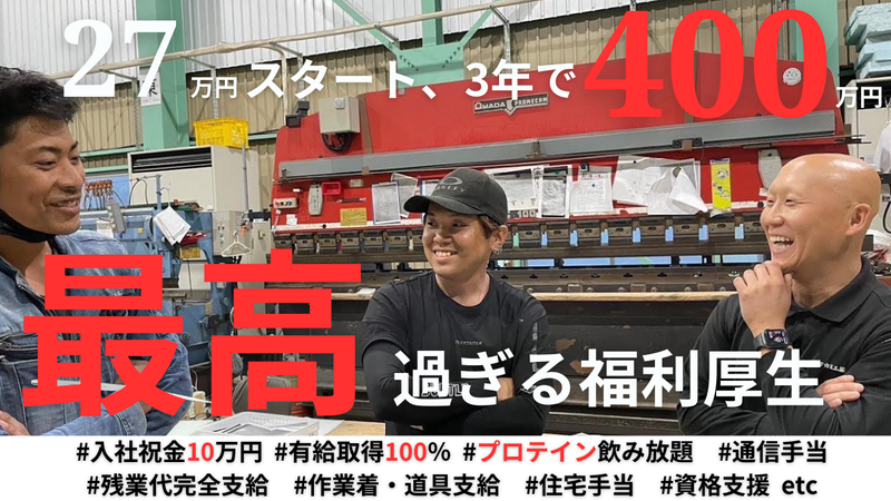 求めている人材 ⭐こんな方大歓迎!!  ̄ ̄ ̄ ̄ ̄ ̄ ̄ ̄ ̄ ̄ ̄ ̄ ̄ 1.一流の仕事をして、 一流の給与をもらいたい方 2.若いうちから、 本気で手に職つけて稼ぎたい方 3. 自分にしかできない、 やりがいのある仕事がしたい方 未経験大歓迎! 経験者優遇!! ✅正社員募集 若手社員が多く、勢いのある会社です 毎日しっかり働いてもらえるよう、 作業道具や作業着、プロテイン等支給、 手当も充実しています。 福利厚生は業界トップクラス。 好条件であることをお約束します。 ✅当社の魅力 当社の最大の魅力は、若手が 楽しくいきいきと働いていることです。 若手勉強会、若手飲みを実施。 ワイワイガヤガヤ雰囲気もよく 新人の方も働き易い環境が整っています。 社員全員が主体性を持って、 全員が行動し、挑戦し、 成長する組織を目指しています。 「一流」を目指す環境だからこそ、面白い。 「仕事って面白い」と思えば、 きっと人生も楽しくなる。 もっと人生を豊かにしたい。 そんな方からのご連絡をお待ちしております。 わからないことや不安なことは何でも聞いてください! ✅仕事のやりがいインタビュー&年収例 社員A(33歳5年目・元保険営業) 年収450万円 最初は何もない状態から、建物が 完成したときは達成感がハンパないです! 社員B(26歳2年目・元建設業/現場経験者) 年収500万円 先輩を真似て技術を磨いていけるのがやりがいになっています! 経験を積めば積むほど、楽しくなる仕事だと思います! 社員C(22歳2年目・元工場勤務) 年収400万円 先輩たちに怒られることもありますが、 何でも丁寧に教えてくれるので、毎日楽しく働けています!