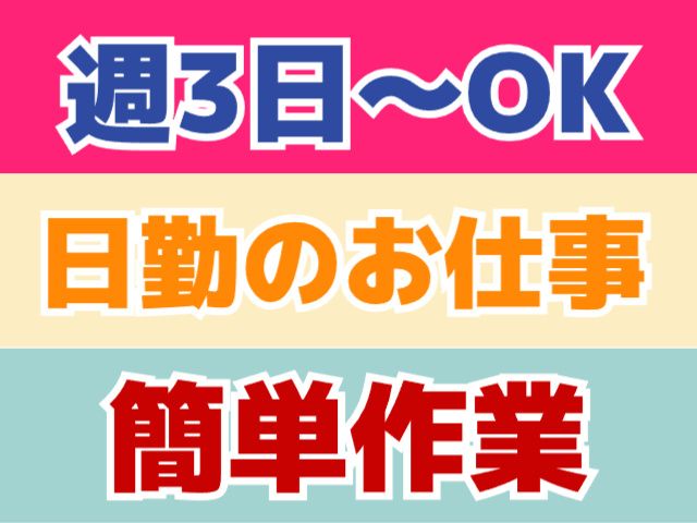 週3日~勤務OK!中高年・シニア活躍中! 未経験でもできる簡単な作業が多め!車・バイク通勤OK