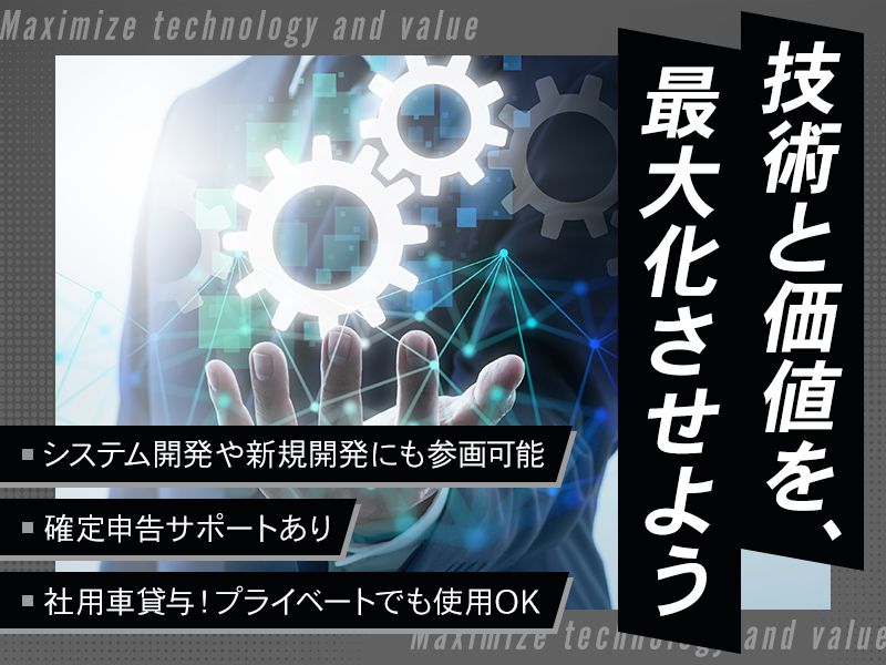 仕事内容 \\働きやすい理由&魅力// ☑確定申告サポートあり ☑交通費支給+車・バイク通勤OK ☑社用車貸与!プライベート使用可 ☑ネイル・ピアス・髪型自由! ☑20~40代活躍中!! 【 仕事内容 】 上流から下流まで幅広く携われる SES案件多数! 経験・スキルを活かして、 社内システム開発・機能改修、 新規開発に参画。 >>具体的には… ・社内向け業務システムの 基本設計、詳細設計 ・新規機能開発および 機能改修業務 ・各種テスト(単体・結合・総合)と 品質管理 ・外部システムとの API連携やデータ連携設計 ・プロジェクト参画企業との 折衝・進行管理