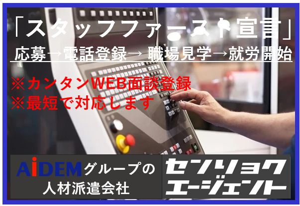 募集要項 職種 製造会社での製造補助(機械オペレーター) 雇用形態 派遣社員 仕事内容 ★金属製品会社での勤務です。★ ~お仕事内容~ ●機械オペレーター 重量物を扱いますがクレーンなどを使うので力仕事ではありません。 機械のボタン操作が中心です。後は機械が勝手にしてくれます! ※最初は先輩スタッフが教えてくれますので安心してスタートできます!