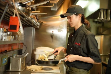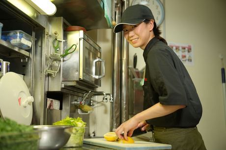 職場環境 【従業員構成】 □■チームワークが自慢のお店!■□ 20代を中心に、フリーター・大学生・主婦・主夫などたくさんの仲間が活躍しています。 店長やチーフを始めとした社員スタッフとの距離も近くて働きやすい◎ 「居心地がいいから」と、長く働く先輩も多いです。 □■「キッチンからホールへ」「ホールからキッチンへ」のジョブチェンジも可能!■□ 【職場の雰囲気】 にぎやかな職場 個性が活かせる 立ち仕事 アットホーム お客様との対話は多い 初心者活躍中 自分の都合に合わせやすい 知識、経験不要