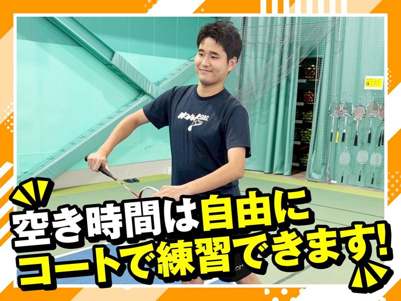 求めている人材 【必須条件】 ・バドミントン経験3年以上の方 ※コーチ経験は問いません! ※年齢不問!学歴不問! 【現スタッフについて】 20代~40代の 大学生や主婦、シニア世代など 幅広いスタッフが活躍中です! コーチ未経験スタートが半数以上! バドミントンが好きな スタッフばかりなので 空き時間にバドミントンの試合をすることも! 【こんな方にピッタリ!】 ・バドミントンが好きな方 ・高校、大学でバドミントン経験がある方 ・現在もバドミントンスクールに通っている ・将来的にバドミントンコーチになりたい方 ・人に教えることが好きな方 ・子どもが好きな方 ・指導スキルを身に付けたい方 ・バドミントンコーチ経験がある方 ・バドミントンスキルを磨きたい方 ・久しぶりにお仕事復帰したい方 ・アルバイト、パートから正社員を目指したい方