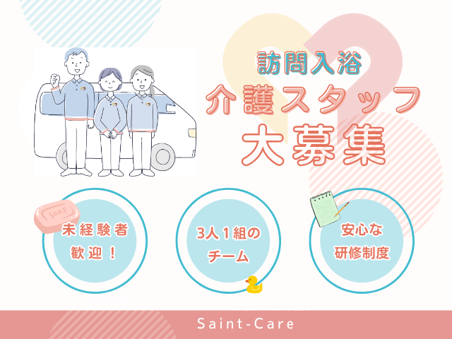 仕事内容 訪問入浴車(普通自動車のハコバンクラス)運転し、お客様宅訪問。 入浴の浴槽の準備・衣服の着脱・入浴介助を担当して頂きます。 ・3人体制で乗務します ・内勤業務があります(帳簿作成)
