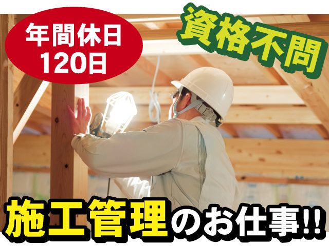 建築現場作業や現場監督の経験者/建築系の資格不問/年間休日120日、土日祝休み
