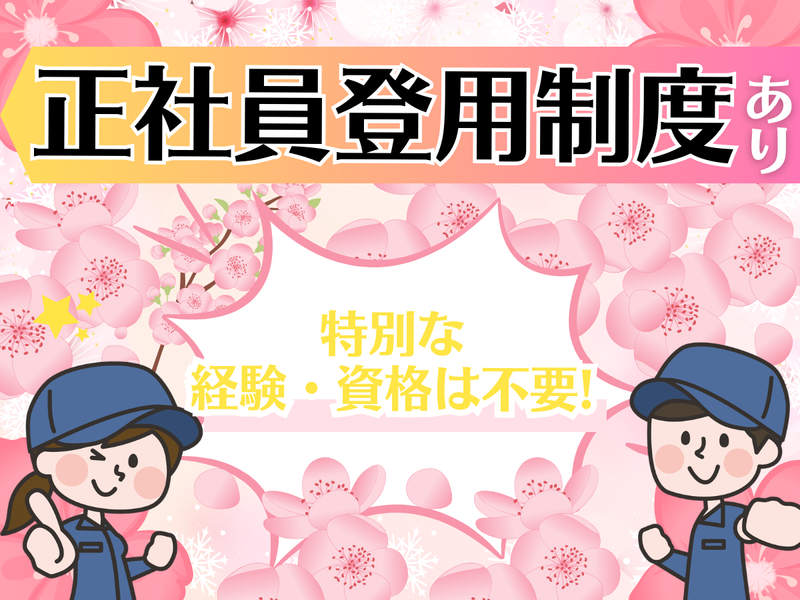 求めている人材 ◆未経験OK ◆ブランクOK ◆フルタイムで入れる方 ◆車が好きな方 <下記のような方におすすめ!> ・工場や倉庫内作業経験がある方 ・整備士・製造経験がある方 ・車に関わる仕事に興味がある方 ・週5日で安定勤務したい方 ・体への負担が少ない仕事を探している方 ・ハローワークでお探しの方も歓迎 ・正社員を目指して働きたい方