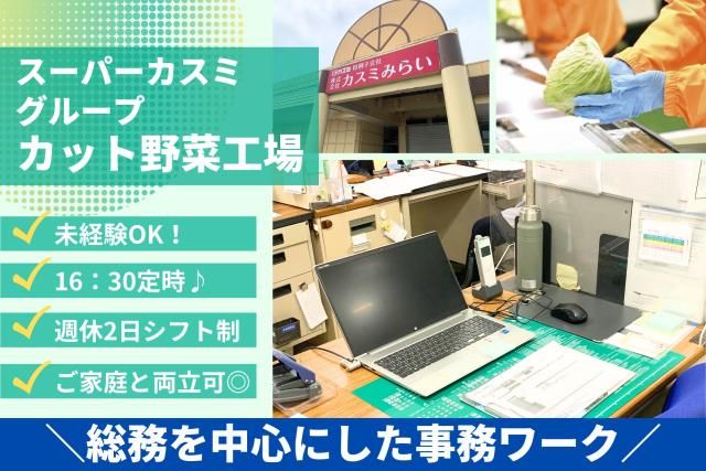 カスミグループ 事務 未経験OK 16時30分まで 週5日フルタイム しっかり収入可 5連休制度有◎ スーパー「カスミ」で販売している、ダイコンやキャベツなどのカット野菜。その製造センターとして2018年にオープンし、現在40名ほどの障がいのあるフレンド社員が活躍しています! 事務スタッフは、取引先企業とのやりとりから、発注管理、 従業員の労務管理などをおこない、 とどこおりのない流通と、安心の労働環境を支えています◎ 現在女性2名が活躍中♪(50代、60代) 世代交代をみこして新メンバーを増員募集! □未経験OK!(事務の経験や就労施設での経験が あれば尚可) □16:30までが定時!実働7hのフルタイム □希望休(月2回&土日も可)を考慮したシフト制
