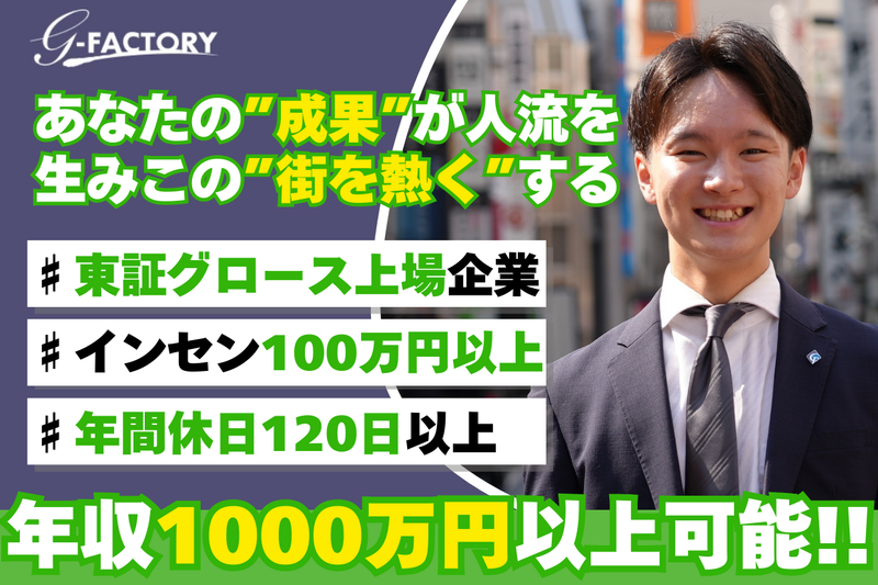 仕事内容 ◇◇◆◇◇◆◇◇◆◇◇◆◇◇◆◇◇◆◇◇ 飲食店の「初めての開業」「多店舗展開」 「海外出店」――私たちはオーナーの挑戦に 現場発の知恵で伴走する出店サポートの プロ集団です。物件仕入れから提案、 交渉、契約、開業準備、設備リース提案まで “一気通貫”で支援。あなたの頑張りが新しい 店と人流を生み街の活気につながります。 ◇◇◆◇◇◆◇◇◆◇◇◆◇◇◆◇◇◆◇◇ G-FACTORYは飲食業専門の 経営コンサル企業。飲食店の「経営」を ワンストップで支援しています。 ●飲食店の出店サポート(国内・海外) ●グローバル人材の採用・定着支援 ●SNS等の集客プロモーション ●職人を短期育成する実践校「飲食塾」 など 自社で出店・運営してきたからこそ掴んだ 「使えるノウハウ」を机上ではなく 現場に還元。オーナーの右腕として、 開業と成長を現実的に支えます。 =◆ 現場発の“一気通貫”支援 ◆= 約30坪・B1~2Fなど“使える”物件に焦点。 居抜き+設備を活かし、初期投資を 大きく圧縮する提案が強みです。 =◆ 店舗展開のプラットフォームの信頼 ◆= 個店から多店舗企業まで多様な支援実績。 物件・資金計画・設備・人材まで 一体で進め、成功確率を高めます。 =◆ まちづくり×グローバルフィールド ◆= 横丁プロジェクトや物件再生で空き区画を 「人が集まる場」へ。さらにアジア圏中心の 海外出店支援にも貢献。人と店、地域と世界 をつなぎ、にぎわいと成長の循環を創ります。 ≪仕事内容≫ 出店サポート営業(不動産/物件コンサル)。 担当エリアの地場不動産との関係構築と 反響対応を軸に、物件仕入れ~選定~ 提案~交渉~契約推進までを担当します。 契約実務は先輩が伴走するため、 フィールドワークと関係づくりに 集中できます。 【中小企業オーナーに“実需”で向き合う】 オーナーの業態・客層・投資計画を踏まえ、 「この立地ならコンセプトが活きる」提案を 実施。開業準備や設備リースまで含めて、 現実的に前へ進めます。 【主な仕事内容】 ● 地場不動産への新規・定期訪問 ● 物件情報の収集・選定・内見段取り ● 出店希望者への物件提案・同行・条件交渉 ● 契約実務の推進(先輩が支援) ● 造作譲渡・設備リースなど付帯提案 ● 物件情報ミーティング(日次)・SFA更新 ■□~当社で働くポイント紹介!~□■ ◇★ OJT徹底。“街を歩いて覚える”育成 ★◇ 先輩同行で内見・交渉の型を体得。 日次の物件情報ミーティングで、案件の 良否や交渉論点を素早く共有し、 実践で力を伸ばせる環境です。 加えて、初週は基礎研修 → 同行 → ロープレの順で段階的に習得。 “街を歩く → 気づく → 提案する”までを 短いサイクルで回せる育成設計です。 ◇★ “こんにちは”から始まる実需営業 ★◇ 初訪でもためらわずドアを開ける “すっと入れる力”を評価。 明るい第一声、約束の精度、 新しい物件情報が出たときに、最初に 思い出してもらえる存在を目指します。 受付で名刺+ひと言だけ、売り込みなし。 次回の軽い情報交換だけ約束します。 先方が忙しい/不在ならお礼メモやメールで フォローし、都合に合わせて再訪。 繁忙期やエリア動向など役立つ話題を添え、 接点を少しずつ積み上げます。 小さな信頼を積み上げ、大きな成約へ。 関係が深まるほど情報の質も上がります。 ◇★ 実績主義の評価×高インセン ★◇ 評価は売上金額でシンプルに行います。 大型案件では600~700万円規模の売上が 発生することも。 成果は四半期で即反映され、基準超過分に インセンティブが加算されます。 まずは月給30万円以上を土台に、 資格手当・住宅手当・扶養手当で 生活面も後押しします。 結果として、年収は550万円→700万円と 段階的に伸び、1,000万円に届く キャリアも生まれています。 ◇★ 広がるキャリアと挑戦の舞台 ★◇ 担当エリアのキーパーソンから、 プロジェクトリーダー、横丁プロデュースや 地方創生、海外出店支援へと 挑戦の幅が広がります。 現場で培った“立地×業態×投資回収”の 目利きを武器に、店舗開発や事業企画、 新拠点の立ち上げへとキャリアを 広げられます。 新しい役割やステージに挑戦できる 機会があり、自分らしいキャリアを 長期的に描いていけます。 ◇採用担当者からのメッセージ◇ 最初の「こんにちは」で空気を変え、 次の約束をきっちり返す―― そんな誠実さと現場感覚を持つあなたへ。 私たちは関係構築型。無理な売り込みは せず、5分の情報交換を重ねながら、 信頼を築いていきます。その積み重ねが、 良質な情報と成果につながります。 街に残る仕事がしたい。 オーナーと真正面から向き合いたい。 そんな想いを持つ方なら、 きっと大きな舞台で活躍できるはずです。 まずは気軽に話してみませんか。 あなたの一歩が、新しい店と 未来のキャリアを動かします。