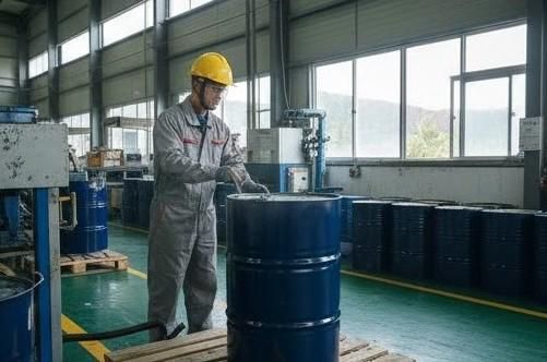 ドラム缶再生工場でのライン作業