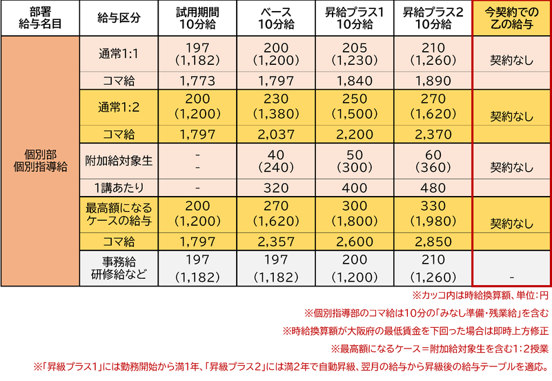 時給1,182円~1,980円 給与詳細 基本給:時給 1182円 〜 1980円 *授業以外の給与は時給換算で1,182~1,200円 *勤続年数に応じた昇給有 【給与例】 給与例 アルバイト講師の平均時給1,568円 (時給換算,2025年実績,研修期間の講師を含む)