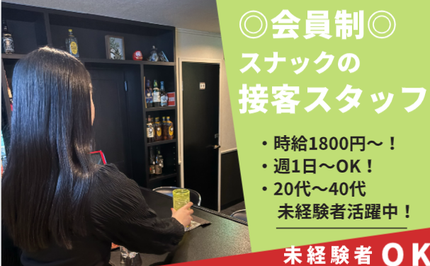 初募集!時給1800円~!会員制スナックで常連さんが中心!