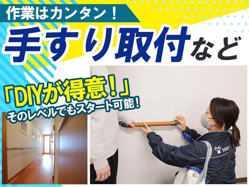 求めている人材 【⏩必須条件】 ・未経験者歓迎 ・高卒以上 ・普通自動車免許(AT限定可) ・PC作業スキル(メール、Excel入力レベル) ・チームプレーを大切にできる方 ・日本語がネイティブレベルの方 【⏩こんな方も大歓迎!】 ・高齢者向けの営業、接客、介護、福祉など 人に喜ばれるサービスに興味がある方 ・DIYやものづくりが好きで、 リノベーションなどの仕事に関心がある方 【⏩向いている人】 ・人と関わる仕事が好きな方 ・新しいことへのチャレンジが好きな方 ・チームで作業することが得意な方 ────────────────── ⭐社員に聞いてみました!⭐ ────────────────── ✅Yさん(未経験入社) 家族を看取った経験が、人生の転機になった - 私は総合広告代理店で約20年働いた後、 家族を自宅で看取った経験をきっかけに、 “人を支える仕事”がしたいと考えるようになりました。 職業訓練校で転職活動をしていた際に出会ったのが、 ヤマシタでした。2025年1月に入社しています。 入社の決め手は、会社説明で 「施工力だけでなく、コミュニケーション力やPCスキルも重視している」 と聞き、人を大切にする会社だと感じたことです。 現場では、水平・垂直にビスを正確に打つといった 一見単純な作業ほど奥が深く、 状況によっては斜め打ちが必要になることもあります。 毎回小さな発見や学びがあり、飽きることがありません。 さらに、チームで段取りをしっかり共有しているので、 チリ合わせなどのトラブルも少なく、 安定した品質につながっています。 そうした“チームでつくる現場”が、 働きやすさにもつながっていると感じます。 事業はまだ立ち上げ期で、社内での認知はこれからですが、 現場ではすでにチームの結束があり、 日々の仕事を通じて少しずつ基盤ができてきていると感じます。 仕事内容や人間関係、職場の雰囲気は 選考時に抱いた印象どおりで、 覚えることが多い分だけ、成長を実感しています。 特に、残業や休日出勤の管理がしっかりしているなど、 労務環境が整っているのは大きな安心材料です。 さらに、入社後はOBが伴走してくれるサポート体制もあり、 無理なく着実にスキルを伸ばしていけるのも魅力ですね。 技術力だけでなく、人柄や協調性を重視し、 チームでお客様に寄り添うこの仕事は、 ワークライフバランスを保ちながら やりがいを得たい私に最適な環境です。 「技術を通じて人の暮らしを支える仕事」を 自分のキャリアとして築きたい方にとっても、 きっと居心地のいい職場だと思います。 年齢の条件と理由:あり(例外事由3号のイ・45歳未満(長期勤続によるキャリア形成のため))