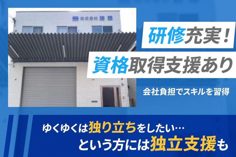 求めている人材 \\ 未経験の方も大歓迎です // ★【必須】普通自動車運転免許(AT可) ★経験・年齢・性別・学歴などは一切不問! ★「異業種・異業界からの転職を検討中の方」 「ブランクある方」「フリーターの方」など 向上心・意欲ある方、皆さんを応援します! ◇◆…◆◇…◇◆…◆◇…◇◆…◆◇…◇ 無資格の方でも仕事に活かせる資格を取得できるよう "資格取得支援"でバックアップ・サポートします! ゆくゆくは独り立ちをしたい…という方には独立支援も行っています。 安定した企業で働きたい、手に職をつけたい、独立したいなど 意欲のある方は是非ご応募ください◎ 年齢の条件と理由:あり(例外事由3号のイ・45歳未満(長期勤続によるキャリア形成のため))
