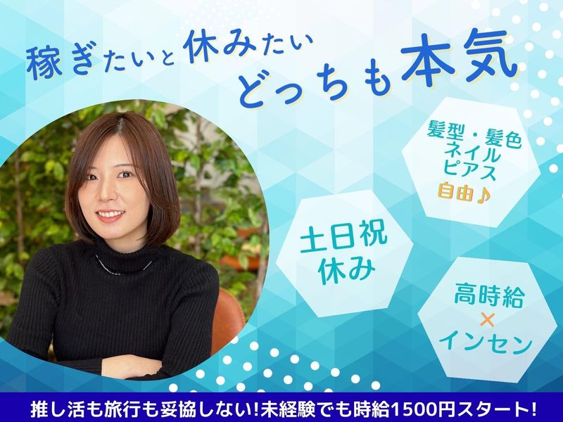 時給1,500円~2,000円 給与詳細 基本給:時給 1500円 〜 2000円 時給1,500円+インセンティブ! 成績次第で正社員さん並みのお給料をもらえます! 嬉しい前払いも出来ちゃいます!(社内規定あり) 「年末の出費、不安ならここで解決!」 給与前払い制度あり|年内からサクッとスタートOK ◆クリスマス・年末年始でおサイフがピンチ… ◆そんな時も前払い制度があるから安心。 ◆サクッと稼いで、気持ちよく新年を迎えませんか? 【給与例】 給与例 【給与例】 ▼日給(7.5h勤務) 11,250円 ▼平均月収 1ヶ月/225,000円 3ヶ月/280,000円 半年/310,000円 インセンティブ額によっては、 月収30万円以上になることも♪ 必要になったら前払いもOK!(社内規定アリ)