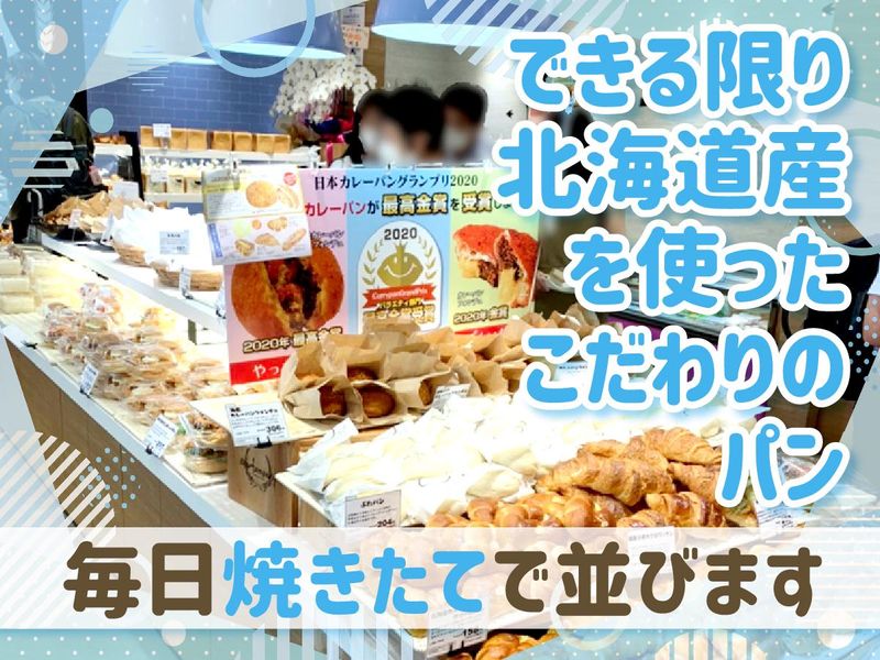 職場環境 国道312号線沿いで北海道産の食材を使った美味しいパンを提供! 「日本カレーパングランプリ」で2020年から2024年まで 連続で最高金賞を受賞するなど、たくさんの方に愛され続けるパンが自慢です。