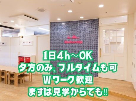 仕事内容 【仕事内容】 【マザーシップ船場保育園の保育士|フルタイムパート】 ☆新しくて綺麗な園舎!若手スタッフが活躍中☆ モンテッソーリ教育を取り入れ、子どもたちの想像力や自立心を大切にする保育を行っています。 20~30代の明るく元気なスタッフが中心で、人間関係も良好◎ 風通しの良い、働きやすい環境が整っています! ◎主な仕事内容 ・月案や個人別指導計画の作成(パソコンやタブレットでの入力で簡単◎) ・日誌、連絡帳記入 ・保育室、園内清掃など ☆製作は無いので、持ち帰りの仕事や残業はありません! ☆園の特徴☆ 【1】モンテッソーリ教育を取り入れた、子どもの自主性を育む保育 【2】新しくて清潔な園舎&充実した設備 【3】20~30代の若手スタッフが中心で活気ある職場 【4】人間関係良好で明るく風通しの良い雰囲気 【5】残業・持ち帰り仕事ほぼナシでプライベートも大切に 【6】子ども一人ひとりとじっくり関われる保育体制 ☆園からのメッセージ☆ 保育士の人数も多く、子ども一人ひとりとじっくり向き合える保育ができます。 気持ちにゆとりを持って、子どもたちの成長を一緒に見守りませんか? あなたからのご応募を、心よりお待ちしております♪ ★こんな方におすすめ★ ・子ども一人ひとりと丁寧に向き合いたい方 ・明るくフレッシュな環境で働きたい方 ・チームワークを大切にする職場を求めている方 ・プライベートも大切にしながら働きたい方 ・モンテッソーリ教育に興味がある・学びたい方 ・ピアノや制作に不安があるけど保育に挑戦したい方 ・新卒・未経験・ブランクのある方も大歓迎◎ 【施設概要】 開園時間:7:15~19:30 定員:66名(在園児数:66名) 【お仕事のポイント】 【おすすめポイント◎】 ◎若い先生が多数在籍♪ →20代~30代の先生が中心!明るく元気な雰囲気で、毎日楽しく働けます! ◎快適でキレイな園舎 →清潔感のある環境&充実した設備が整っており、安心して保育に集中できます! ◎お休みしっかり◎ →完全週休二日制♪希望休も通りやすく、プライベートも大切にできます。 ◎柔軟な働き方が可能! →WワークOK! →勤務時間の相談OK!(ライフスタイルに合わせて働けます♪) ◎ライフイベントも安心 →育休・産休取得後の復帰率ほぼ100%! →残業は一切なし!家庭や趣味との両立も◎ ◎未経験・ブランク歓迎♪ →ピアノが苦手でも大丈夫!サポート体制が整っているので安心してスタートできます。 ◎うれしい福利厚生も♪ →職員給食あり(1食200円) →ユニフォーム貸与(夏・冬) →有給取得率100%! ◎まずは園見学からでもOK! →雰囲気を見てから検討したい方も大歓迎!お気軽にお問い合わせください! 1576657