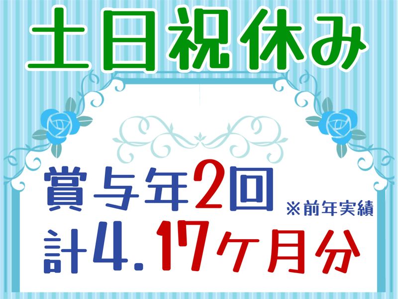 仕事内容 【金属部品の品質管理のお仕事】 ■処理液の品質分析(品質基準を満たしているかの確認) ■試験結果をパソコンを使用し専用システムへ入力 ■測定機器の管理(清掃や動作確認、消耗品の交換など) ■書類作成や管理・検査補助など 職場見学が出来るので、まずは実際の仕事を見てからでもOK♪ ===================== =求人のポイント= *日勤のみで働きやすい *土日祝休み&年間休日121日 *残業月平均20時間!定時で上がれる日ももちろんあり *賞与年2回(計4.17ケ月分/前年実績) *業績により年2回の賞与の他に臨時賞与あり *各種手当あり(家族・住宅・資格など) ★こんな方に向いています!★ *手順をしっかり守れる方 *ルーティンワークが苦にならない方 *機械いじりが好きな方