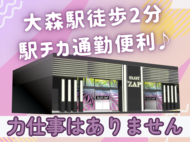 仕事内容 ✨新着求人✨ スロット専門店での 【遅番シフト】16:30~23:45の ホール・カウンター業務♪ 週4日~OK! ✨最高時給2000円(遅番・深夜割増含)✨ しっかり稼ぎたい20代フリーターが 多数在籍しています! ◆―――――おすすめポイント――――◆ ✅未経験者も時給1500円〜 ✅週2,3日勤務や時間相談もOK◎ ✅大森駅徒歩2分!通勤ストレスゼロ♪ ✅髪型・髪色・ネイル・ピアス自由! オシャレはそのままでOK ✅重たい玉運びはありません!! ✅履歴書不要×普段着OKのラフ面接◎ ⭐電話応募も大歓迎♪面接までスムーズ! 面接時に履歴書不要。普段着でどうぞ! TEL:03-3764-0665 ◆―――――――――――――――――◆ 【仕事内容】 パチンコ店でのお仕事です! どなたでもスグに覚えられる内容ばかり♪ ⭐接客対応(お客様のご案内など) ⭐メダル補充や回収 (スロットなので軽作業) ⭐遊技台まわりの簡単なお掃除 ⭐カウンターでの景品交換 ⭐在庫のチェックや発注補助など 重たい玉箱運びは一切なし! 未経験でも安心してスタートできます。 【未経験スタート歓迎!】 接客やパチンコ・スロットの 知識がなくても大丈夫! 最初は先輩が 丁寧にレクチャーするので安心。 「なんとなく楽しそう」 「人と話すのが好き」 「推し活と両立したい」 そんな気持ちがあればOKです♪ 【自分らしさを大切に】 髪型・髪色自由、ネイルやピアスもOK! 「自分らしいスタイルで働きたい」 そんな方にピッタリ♪ 堅苦しさゼロ、 ナチュラルな笑顔でいられる環境です。 ⭐20代女性スタッフのに聞きました⭐ ~実際に働く 20代女性スタッフに聞きました~ ― このお店のいいところは? 「まず、未経験でも安心なところ! 私も最初は不安だったけど、 先輩が優しく教えてくれて すぐ慣れました♪」 ― 応募の決め手は? 「ピアスとかネイルOKって見て、 “ここだ!”って思いました(笑) オシャレを我慢しなくていいのって、 やっぱり嬉しいです! さらに、週4日勤務OKで MAX時給2000円になるので、 しっかり稼げるのも魅力でした。」 ― 実際に働いてみてどうですか? 「自分のスタイルで働けるから、 気分も上がるし、自然と笑顔になれますね。 それに、シフトも柔軟だから プライベートも充実してます◎」 ― 最後に、 応募を迷っている方へメッセージを! 「仕事内容も難しくないし、 スタッフ同士も仲良くて雰囲気も良いです! ぜひ、一緒に楽しく働きましょう~!」