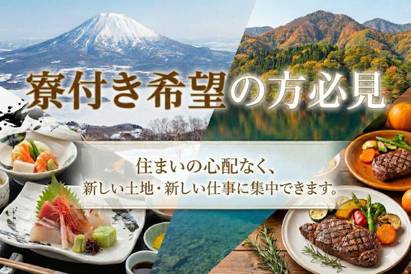 仕事内容 自然に囲まれた温泉リゾート、 洞爺・阿寒湖・定山渓・裏磐梯 ―――― 4つのエリアからあなたが働きたい地域を 自由に選べるのが大きな魅力です♪ いずれも自然豊かなリゾート地で、 登山・温泉・スキー・アクティビティなど 休日の楽しみも超充実! 「新しい土地で暮らしてみたい」 「寮付きなら安心して挑戦できる」 そんな方にピッタリの環境です。 ~・~・~・~・~・~・~・~・~ ■ 4つの勤務地の特徴 ■ ~・~・~・~・~・~・~・~・~ ⭐洞爺サンパレス(北海道・洞爺湖)  ̄ ̄ ̄ ̄ ̄ ̄ ̄ ̄ ̄ ̄ ̄ ̄ ̄ ̄ ̄ ̄ ̄ 自然に囲まれた温泉リゾート。 洞爺湖温泉・遊覧船・ロープウェイ等、 周辺施設がとても充実。 登山・サウナ・観光など 自然の中で暮らす贅沢を味わえます。 ⭐ニュー阿寒ホテル(北海道・阿寒湖)  ̄ ̄ ̄ ̄ ̄ ̄ ̄ ̄ ̄ ̄ ̄ ̄ ̄ ̄ ̄ ̄ ̄ 非日常感あふれる、 阿寒湖のほとりの人気リゾート。 カヌー・サイクリング・ 氷上アクティビティ・スキーなど、 1年中アクティビティが楽しめます。 ⭐定山渓ビューホテル(北海道・定山渓)  ̄ ̄ ̄ ̄ ̄ ̄ ̄ ̄ ̄ ̄ ̄ ̄ ̄ ̄ ̄ ̄ ̄ “田舎すぎず、自然が近い” 絶妙なロケーション。 温泉・渓流・スキー場など 周辺スポットが豊富で、 オンオフともに無理なく楽しめる環境です。 ⭐裏磐梯レイクリゾート(福島・裏磐梯)  ̄ ̄ ̄ ̄ ̄ ̄ ̄ ̄ ̄ ̄ ̄ ̄ ̄ ̄ ̄ ̄ ̄ 福島県内でも知名度抜群の大型リゾート。 スノーハイク・乗馬・カヌー・ 果物狩り・グランピング… 趣味を満喫できる環境が整っています。  ̄ ̄ ̄ ̄ ̄ ̄ ̄ ̄ ̄ ̄ ̄ ̄ ̄ ̄ ̄ 求人のポイント  ̄ ̄V ̄ ̄ ̄ ̄ ̄ ̄ ̄ ̄ ̄ ̄ ̄ ̄ ■未経験・ブランク・第二新卒歓迎! ■寮完備で新生活をサポート ■洋食の基礎〜応用まで学べる教育体制 ■創作洋食・バイキング・宴会など 幅広い調理経験が積める ■アイデアが料理になる! 新メニュー開発にも挑戦可能  ̄ ̄ ̄ ̄ ̄ ̄ ̄ ̄ ̄ ̄ ̄ ̄ ̄ ̄ ̄ お仕事内容  ̄ ̄V ̄ ̄ ̄ ̄ ̄ ̄ ̄ ̄ ̄ ̄ ̄ ̄ 朝夕バイキング・洋食レストラン・ 宴会場など、ホテルならではの 多彩なキッチンでの勤務です! 創作洋食を中心に、フレンチ・イタリアンの 要素も取り入れた料理を提供します。 ✅仕込み、調理補助、盛り付け ✅バイキング会場での調理・ ライブ感のある調理演出 ✅洋食レストランでの前菜・メインの調理 ✅季節イベントや フェアに合わせたメニュー企画 ✅後片付け、清掃、衛生管理 ~ メニューの一例 ~ ・地元食材を活かしたメインディッシュ ・お客様の声を反映した新メニュー開発 ・季節イベントに合わせた オリジナル料理 など < 未経験から洋食のプロへ > 独自の教育体制で、 前菜 → メイン → ソースへと 段階的にステップアップ可能◎ 慣れてきたら新メニュー開発にも チャレンジできる環境です。 □■ 社員寮完備!新生活を応援 ■□ ホテル敷地内には社員寮をご用意。 住まい探しの負担がなく、 着実に新生活をスタートできます。 さらに嬉しいのは、 温泉・サウナを仕事終わりに 気軽に利用できること。 リフレッシュしながら働ける、 ホテルならではの特別な環境です。
