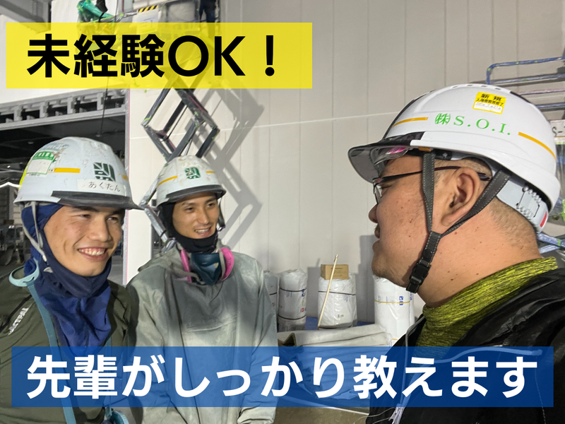 仕事内容 <将来の仙台支店長候補を募集> 当社は「耐火被覆工事」を手掛ける会社です。 耐火被覆とは、簡単にいえば建物を守る防火工事のことです。 梁や柱などの骨組みを、耐火材や断熱性の高い素材で覆い、 火災から建物を守る工事を行っています。 今回は、その耐火被覆工事の施工クルーの募集です。 当社の特徴や仕事内容に関しては、下記に記載します。 1,経験・スキル・資格が無くてもOK! 今回募集するクルーは、未経験・無資格でもOK! イチから丁寧に指導、研修を行います。 「転職したいけどやりたい事が特にない…」 「自分の経験や学歴ではいい仕事が見つからない…」 そう考えている方も大歓迎!あなたの経験が当社で活かせます! 特に飲食・接客業の経験者の方は、 こまめな「報連相」が出来る方が多く、 当社の仕事でとても活かせます。 2,休みと収入がバランス良く両立できる仕事です 当社のイチバンの特徴は、休みと収入がバランス良く両立できる所です。 まず、休みは申請すれば気兼ねなく取れるシステムで、 現場仕事では珍しく週休二日制も可能です。 元々当社は、同業種で働いていた現社長が、 業界全体の「休みにくい悪習」が嫌で設立したので、 休みに関しては非常に取りやすい環境です。 ※恋人とのデートや、ゲームの発売日で休みを取る人もいるくらいです。 ※土曜日や日曜日も休めるので、友人と予定を合わせることも簡単です。 ◆希望者は関東などへの出張も可能(1週間程度) 3,慣れてくれば、収入も上がりやすい仕事です 最初は日給1万円からスタート。 経験を積んで、出来る作業が増えたり、 作業スピードがあがったりすれば、給与もあがります。 月収例)3年目/月収32万5000円(日給1万3000円×25日) 賞与も年3回あり。 3~5年勤務で、年収500万円も可能です。 4,社風は月並みに言えば「人間関係がいい」です スタッフAさんインタビュー) ウチはガチガチの上下関係はないし、みんなやさしいです。 先輩も課長も準備や片付けも一緒にやってくれますよ。 意見とかも言いやすいし、ちゃんと聞いてくれるんですよね。 仕事のことでもいいことだったら、取り入れてくれるんです。 スタッフBさんインタビュー) 大変だと感じることが特にないのが良いですね。 夏や冬は季節柄、体力的にキツイな〜って思う時にも励ましてくますし。 やさしい先輩ばかりで、 「この人、嫌だなぁ」と思う人がいない! ホント、居心地イイところですね。 <<当社の仕事はこんな方にピッタリです!>> ・転職したいけど、やりたい仕事が見つからない人 ・お金も大事だけど、休みや自分の時間を確保したい人 ・元飲食・サービス・接客業で休みが欲しくて転職を考えている人 ・マイペースな性格で、着実に成果を出せる人 ・ゲームが好き、楽しい作業が好きな人 ・自分の技術の向上が目に見えて分かるのが好きな人 <<詳しい仕事内容(耐火被覆・タイカヒフク)>> 耐火被覆工事とは、建物を火事から守る工事のことです。 主な作業は大きく分けて、3つあります。 聞きなれない言葉が多いと思いますが、 どれも複雑な工程ではありません。 作業自体は1週間もあれば覚えられます。 ・「マキベエ」 耐火材を鉄骨の柱等に巻きつけ、スタッド溶接します。 専用のガンにスタッドというピン(ネジ)を取り付け溶接。 ・「ケイカル」 珪酸カルシウム板を採寸・切断し、鉄骨の柱等に取り付け。 最後に仕上げでパテ処理を行います。 ・「吹き付け」 ロックウール粒状綿を鉄骨の柱等に吹き付け、 仕上げにコテ押さえを行い、厚さを均等にします。 <1日の仕事の流れ(例)> ・06:00~07:00集合 ・08:00~08:15現場にて朝礼 ・08:15~10:00作業 ・10:00~10:30休憩 ・10:30~12:00作業 ・12:00~13:00お昼休憩 ・13:00~15:00作業→15:00~15:30休憩 ・15:30~17:00作業(現場による) ・17:00終了・帰宅 <現場は屋内での作業> 天気に左右されないので、安定収入が可能です。 現場作業は雨が降るとSTOPしてしまうことが多く、 収入にも影響が出やすいなんてよく言われますがこの業界は関係ありません。 現場仕事は大変なので、30℃以上に達したら酷暑手当日額1000円つきます。 出張連続90日以上行くと、家族旅行プレゼント(規定あり)! 積み込み手当てなど、様々な手当が充実しています。 ■仙台営業所は立ち上げ間もないので、一緒に成長していきませんか? ■年をとって体がきつくなったら、いつまでも現場で働かなくて大丈夫。 将来の仙台事務所の管理者候補としての道も! 管理側としてデスクワークメインでも働けます。 たくさんの作業員を抱えているため、管理側の人材育成にも注力しています!