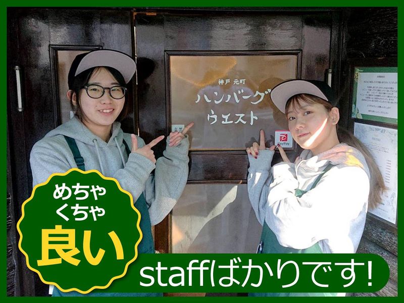 仕事内容 #プライベートとの両立もばっちり #主婦さんや、授業があまりない大学3・4回生も活躍中 #オシャレなハンバーグ専門店 #ブランクのある方や初パートという方も◎ お客様のご案内、注文のお伺い、 お会計、食べ終わったお皿の片付け、 洗い物などをおまかせ! 最初はゆっくり少しずつ教えていきます! やさしいスタッフしかいないので 安心してくださいね。 めちゃくちゃ良いstaffばっかりです! お店もバタバタと忙しすぎることはないので おひとりおひとりに 丁寧な接客をお願いします。 楽しく働けたらいいなと思っています! キッチンもやってみたい! という方はご相談ください。 -------------------- *こんなお店です 2022年に惜しまれつつ閉店した、 伝説「ハンバーグウエスト」。 某クチコミサイトのハンバーグ部門で 兵庫県1位・全国6位を誇る人気店でした。 場所を元町へ変え、新しくオープンしました!