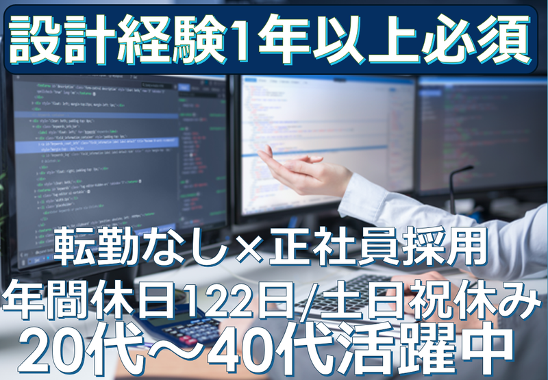 求めている人材 ■必須要件 ・設計業務または解析業務に関わった 経験がある方(期間問わず) ・コミュニケーション能力 (社内外関連部署との調整ができる方) ・向上心があり、周囲と連携を 取っていける積極性をお持ちの方 ・責任感があり積極的に仕事に取り組める方 ・CATIA V5、Creoの使用経験がある方 ■歓迎要件 ・客先及び関連部門との調整能力 ・試験計測経験 ・配線設計能力(CATIA V5(電気系)) ・構造解析能力(CATIA V5、Creo(機械系)) ・要求分析、画面設計、通信I/Fの 仕様検討ができる方 (複数のシステムを連携動作させるのに 必要な技術検討ができる方) ■こんな方におすすめ ・国家の安全に関わる重要な プロジェクトに携わりたい方 ・最新のセキュリティ技術に触れたい方 ・長期的にキャリアを築きたい方 ・技術力を高めながら社会に貢献したい方 未経験の分野にも積極的に チャレンジできる方を歓迎します。 入社後はOJTを通じて、 必要なスキルを身につけながら 成長していただけます。 *経験者歓迎 *有資格者歓迎 *要知識 *要経験 *転勤なし