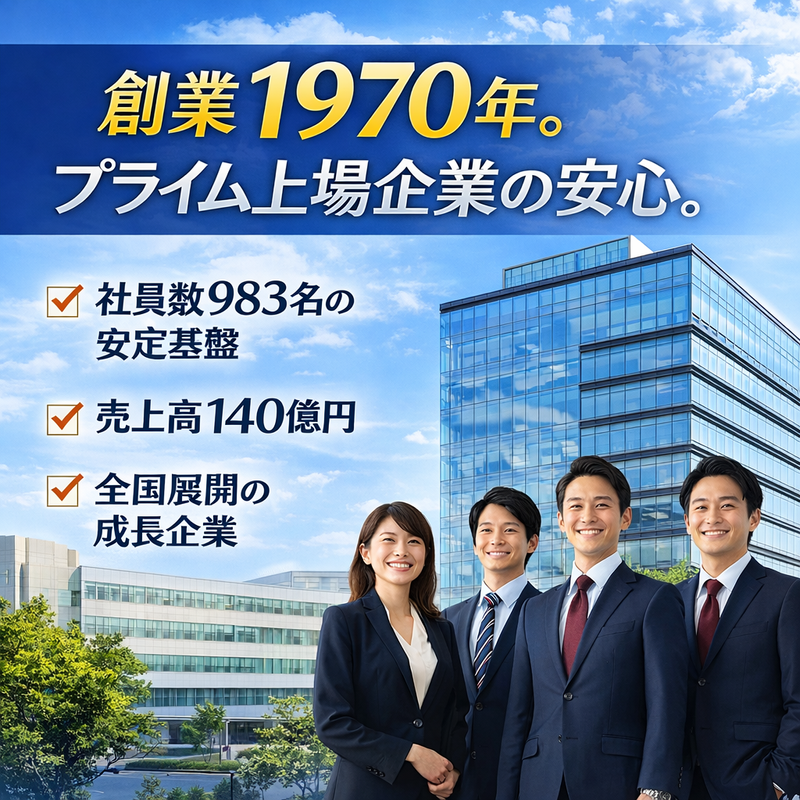 仕事内容 【創業1970年/プライム上場企業】 社員数983名・売上高140億円の安定基盤。 住宅メンテナンスという“なくならない仕事”で、 地元岡山で腰を据えて働ける正社員募集 未経験でも安心の研修&サポート体制あり。普通免許だけでスタート可能! 👉 最初は丁寧な研修・チーム作業中心 👉 力仕事少なめ・手に職がつく仕事 👉 20〜30代活躍中 ■仕事内容 住宅メンテナンススタッフとして、地域の住まいを守る仕事です。 ・主なお仕事 ✔床下・基礎の防除・湿気対策・耐震補強施工 ✔現場ごとのチェック・報告書作成 ✔お客様対応(施工前後の説明) ⭐ 一件ずつ丁寧に進めるので、未経験でも安心! ⭐ 先輩がしっかり教えるので、着実にスキルアップできます ■働くメリット ✔ 手に職がつく仕事 ✔ 社会貢献性の高いフィールドワーク ✔ 仲間と一緒に成長できる ✔ 地元岡山で安定したキャリア形成