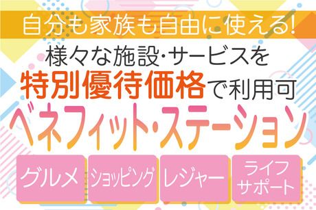 【保険制度】 雇用保険、労災保険、健康保険、厚生年金 待遇・福利厚生 【福利厚生】 ・社会保険完備 ・交通費全額支給 ・車、バイク通勤OK(ガソリン代補助) ・有給休暇 ・制服貸与 ・1食300円の食堂あり(昼夜勤共に利用可) ・空調完備 ・屋内禁煙(屋外に喫煙場所あり) ・結婚祝金、出産祝金、扶養こども手当、入学祝金、退職金制度などの福利厚生が充実(規定) ・紹介キャンペーン ※ご紹介くださった方1名につき5万円を進呈(規定) 【ベネフィット・ステーションの利用が可能】 ベネフィット・ステーションとは、 様々なシーンでご利用いただける 総合型福利厚生サービスです。 映画鑑賞やホテルディナー、宿泊施設 などの余暇・レジャー関連をはじめ、 日常で使えるフィットネスや 育児・介護支援、ライフサポートなど 約140万件以上の幅広いメニューを お得な価格で利用できます。 <サービス例> ・全国40,000以上の宿泊施設 ・全国30,000店舗以上の飲食店 ・全国約7,700ヶ所のスポーツクラブ など スタッフさんはもちろん、ご家族の方もお好きなだけ利用できます。