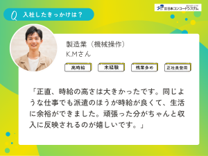 募集背景 SIN 仕事内容 【おすすめポイント】 ★未経験◎ ★冷暖房完備&休憩室・食堂ありで快適 ★20~40代男性スタッフ活躍中! ★土日休み+長期休暇でプライベートも充実 【お仕事内容】 \手のひらサイズ部品の製造オペレーション/ マシニングセンタを使用した金属部品の加工をお任せします♪ ▼具体的には▼ ・マシニングセンタを使った金属部品の切削加工 ・扱う部品サイズは数cm~数十cm程度 ・約2ヵ月の教育期間で操作方法や段取りを習得し、独り立ちしていただきます ・チームごとに担当工程を分担し、協力しながら作業を進めます 希望があればゆくゆくは正社員登用も可能です。 ▼1日の流れ(例)▼ 08:20|出勤・朝礼 → 加工作業スタート 12:00|お昼休憩(45分) 16:45|片付け・日報記入 → 16:55退勤 ~1週間交替~ 20:20|出勤・朝礼 → 加工作業スタート 00:00|お昼休憩(45分) 04:45|片付け・日報記入 → 4:55退勤 ※夜勤にはメリットもあります♪ ★深夜手当がつく! ★平日昼間に自由な時間ができる! ★通勤ラッシュを避けられる! 未経験から始められたスタッフさん多数在籍しており、 製造業が初めての方でも安心して就業可能です! [こんな人が活躍] 幅広い世代が活躍中! 派遣会社でいろんな仕事を経験したい! そんな方増えています! ●勤務時間や勤務地などの条件を選びたい ●アルバイトやパートより安定した仕事に就きたい ●仕事経験が少ないので経験を積んでいきたい 様々な気持ちで働いている方がたくさん! 初めての方もしっかりと サポートしますのでご安心ください! 気になることがあれば 気軽にお問い合わせください!