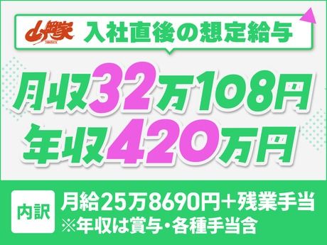 仕事内容 【週休3日制の正社員は、全国転勤なし!】 深夜でも多くのお客様にご来店いただく山岡家。 ◆夜型の生活スタイルで、 プライベートの時間も安定収入も得たい方 ◆飲食店経験や接客スキルを活かしながら、 負担を抑えて働きたい方 …などにオススメ! 《飲食店経験者歓迎》※ジャンル不問 ★らーめん店の経験がなくても大歓迎です! <夜勤専従で高収入!> 入社1年目で、年収例420万円可能!! 家族との時間も自分時間も 圧倒的に増える働き方で、転職直後から高収入◎ ====================== \\ オススメPOINT // 【1】22時~出勤、週休3日×年間休日156日  ̄ ̄ ̄ ̄ ̄ ̄ ̄ ̄ ̄ ̄ ̄ ̄ ̄ ̄ ̄ ̄ ̄ ̄ ̄ ̄ 働き方改革の一環として導入した、 「週休3日制・夜勤専任」の正社員制度。 転居を伴う転勤がなく、地元でライフスタイルに 合わせた働き方が可能になりました! <30~40代で入社した男性活躍中> 家庭を持った方にも選ばれている山岡家。 住み慣れた場所で長く働きたい方や、 家族との時間をゆったり取りたい方にも◎! 【2】東証スタンダード上場企業の安定基盤  ̄ ̄ ̄ ̄ ̄ ̄ ̄ ̄ ̄ ̄ ̄ ̄ ̄ ̄ ̄ ̄ ̄ ̄ ̄ ̄ ■残業代は1分単位で全額支給(みなし残業なし) ■昇給・賞与は年2回!! ■プライベートの都合に考慮したシフト希望休、 有給の取得も可能!(土日・連休の取得もOK) ■男性社員の育休取得実績もあり! ====================== 【お仕事について】 まずはホール業務からスタートし、 店舗全体の流れや雰囲気をつかみます。 その後、キッチン業務や洗い物、 仕込みなども担当していただきます。 <将来的には…> 接客・調理だけでなく、 衛生管理・設備管理など、店長不在の 時間帯の店舗運営も含めてお任せをします。 \\ 中途社員も段階的に学べます! // ◆冊子のマニュアルや、店舗のタブレットでも 視聴できる動画教材などをご用意。 何を・どの順番で覚えればいいかが明確で安心! ◆全店舗、食券制&設備が整った店内。 丁寧な接客と、スープ・ネギ・チャーシュー すべてを「お店で手作り」にこだわる山岡家の スタイルに集中しやすい環境です! ※接客・マニュアル・動画はすべて日本語です。 ※また、衛生記録なども日本語で記入します。 ====================== 【週休2日制へのキャリアチェンジも可】 まずは週休3日制でプライベートと両立。 「もっと働きたい」「キャリアを積みたい」と 思ったら、週休2日制へ転換もできます◎ 実際に、働き方を変えながら キャリアアップを叶えた社員も在籍中! <キャリアチェンジした社員の声> 「子育てと両立しやすい週休3日制の夜勤で入社。 家庭と両立できる範囲での異動など、 柔軟に対応してもらえたので安心して働けました。 そのうちに仕事が楽しくなり、週休2日制の キャリアコースへ転換。キャリアアップが叶い、 今では店長として活躍しています!」 *店長職の収入例 年収580万円(月給43万円+賞与年2回+各種手当) ====================== 【丸千代山岡家について】 全国に190店舗以上のラーメン店を運営中。 売上好調!前年比平均10%以上の成長率! 47都道府県への出店を目指し、新店OPENも続々。 セントラルキッチンを設けず 全店直営&店内手作りにこだわる姿勢で、 根強いファンもたくさんいます! リピート率はなんと75%超え!(自社調べ) <売上高> 186億7600万円(2023年1月期) 264億9400万円(2024年1月期) 345億8500万円(2025年1月期)*前年比130.5%! 《HP》https://www.yamaokaya.com/ 《採用HP》https://recruit.yamaokaya.com/