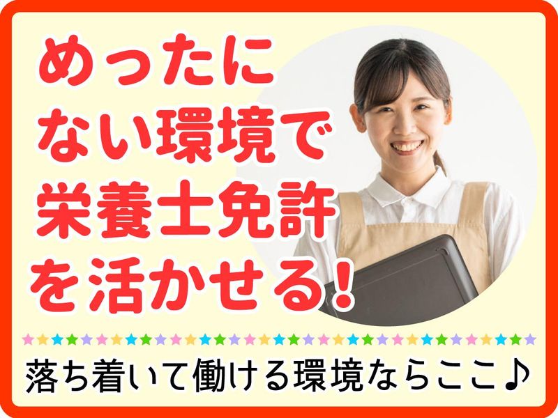 仕事内容 ~平日のみの勤務で土日祝はお休み~ 生活リズムもゆとりもバランスよく。 お仕事詳細 +・・・・・・・・・・・・・・・・・・・・・・・・・・・・・・・ 学生食堂における栄養士業務全般をお任せします ・献立作成 ・栄養バランスの管理 ・食材発注、在庫管理、原価管理 ・調理スタッフへの指示・サポート ・衛生管理・安全管理(HACCP対応 等) ・現場の調理補助業務など ・・・・・・・・・・・・・・・・・・・・・・・・・・・・・・・・+ 利用者は主に学生の方であるため、安定した人数・落ち着いて働くことができます。 気軽に挨拶やお話をする事も多く、楽しい出会いも有る環境です◎ 営業時間も固定だからご家庭や家事、お友達との予定などプライベートと両立ラクラクの環境です! 「来週のシフトが決まっていない…」「毎回残業…」という事が無い為安定した環境で腰を据えて働きたい方にピッタリです♪ じっくり教えてもらえる安心感! ______________ お仕事に必要な知識やスキルは基本からしっかり教えてもらえます! もちろん、フォローアップ体制も十分なくらいに整っているので、 どんな方でも安心してスタートいただけます。 免許があれば、どなたでもチャレンジOK!