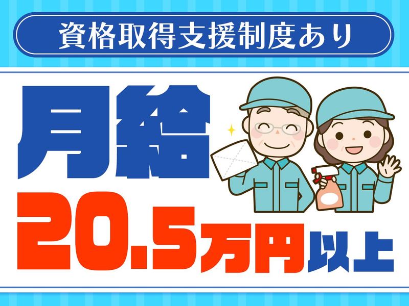 仕事内容 / 正社員スタッフ大募集! 未経験でも今すぐ始められるお仕事です◎ \ 鎌ケ谷市内にある病院施設内にて 待合室や廊下、出入口、トイレ、 浴室などの共用部の清掃をお任せします。 【具体的な業務内容】 ✅掃除機掛けやモップ掛け ✅窓ガラス等の拭き掃除 ✅ごみ回収 ✅日報作成など簡単な事務作業 基本的に難しい作業はほとんどないので、 お掃除の仕事をしたことが無くて不安… という方にもおすすめ! "接客不要"の為、作業に集中できます。 学歴・経験・資格不問!  ̄ ̄ ̄V ̄ ̄ ̄ ̄ ̄ ̄ ̄ やる気と元気さえあれば どなたでも始められるお仕事です♪ 黙々と作業したい方や 日頃のお掃除が得意な方なら すぐに活躍できます! "安心安定"の好待遇◎  ̄ ̄ ̄V ̄ ̄ ̄ ̄ ̄ ̄ ̄ お仕事は16時までなので、 夕方以降の自分時間も充実✨ もし残業が発生した際には 残業手当を別途支給いたします。 勤務時間内にはお昼休憩とは別に 小休憩もあるので、 無理なく働ける環境です! 他にも賞与や資格取得支援制度など 手厚い福利厚生が揃っています。 ////////////////////// << 創立60年!歴史ある安定企業です! >> 当社は創立60周年を迎えました。 これまで建物総合管理、イベントや施設の運営管理 PPP(官民連携事業)をはじめ インストラクション業務、企画・コーディネート業務、 動物飼養管理業務等に取り組んできました。 今後も様々なサービス提供をし続けていく 歴史ある安定企業で一緒に成長していきましょう◎ 長期活躍しているスタッフも多数いますよ♪ //////////////////////