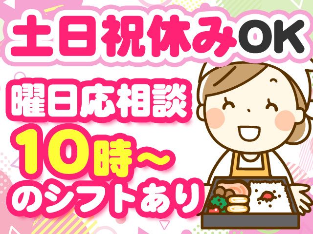 仕事内容 御所市の有名お弁当屋さんで、 接客・調理スタッフ(派遣社員)募集。 \調理資格不要・お弁当を作るお仕事/ ・接客経験があればブランク不問 ・10時スタートのシフトあり ・週4日~で土日祝休みもOK ・時給1,350+交通費支給あり 応募はたった「1分」で完了。 名前・生年月日など簡単な項目の入力のみ。 お電話でも受付中→ TEL:0744-25-6900(採用係迄) 電話受付時間:9時~17時(平日) ※スタッフ登録・面談→選考→紹介先見学の流れで勤務開始 <仕事内容> レジ接客・お弁当の料理を中心に、 電話での予約注文対応や店内清掃をお願いします。 <接客・調理経験があれば即戦力> 季節ごとにメニューが変わるため、 「料理が好き」「調理師免許を活かしたい」 そんな方にピッタリ。 普段の家事の延長でスタートできるから 調理に関する資格は不要です。 <まずは仕事の流れから教えます> 最初はお弁当のメニューを覚えるところからスタート。 調理は簡単な物からお任せし、 徐々に調理する幅を広げていきます。 接客も簡単な対応ばかりなので、 人と話すのに抵抗がなければ活躍可能です。 <週4日~曜日は応相談> 土日祝休みもOK。 週4日~でシフトは相談に応じます。 家庭と両立したい主婦(夫)さんや、 子育て世代の仕事復帰に最適です。 <アクセス> 近鉄御所線 近鉄御所駅から徒歩10分 JR和歌山線 御所駅から車で5分