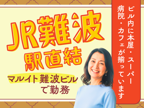 職場環境 \ JR難波駅直結♪ / マルイト難波ビルでの勤務! 大阪メトロ御堂筋線、千日前線、 四つ橋線のなんば駅や、 近鉄・阪神大阪難波駅など、 地下直結で多方面からアクセス良好◎ 職場では、20~60代まで幅広い世代の 男女スタッフが活躍中です! 喫煙所:喫煙所あり(屋内) 受動喫煙対策済み