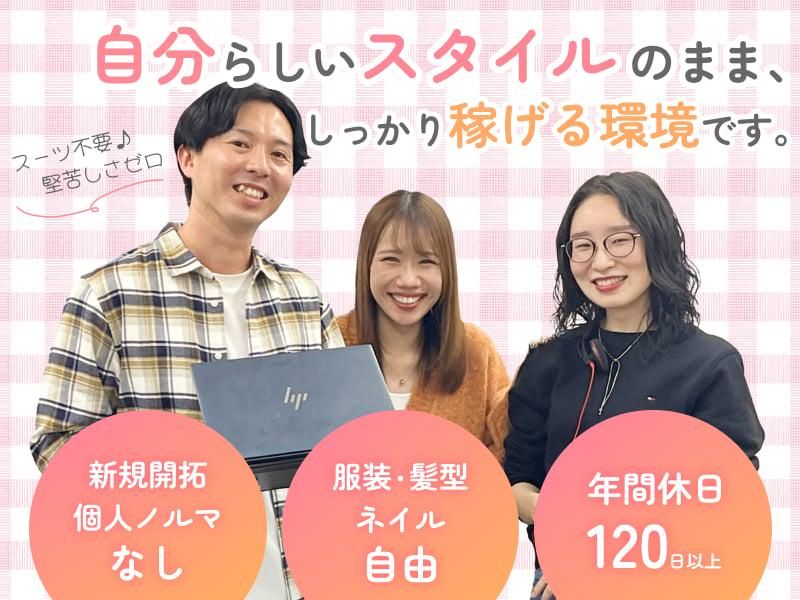 職場環境 ■ 原則定時退社・残業ほぼなし ■ 完全週休2日制/年間休日120日以上 ■ 昼休憩1時間+小休憩あり ■ 20~30代中心のチーム制 ■ 人間関係のストレスゼロ ■ ノルマなし(インセンティブあり◎) 異業界から転職したスタッフも多数! 喫煙所:喫煙所あり(屋内)