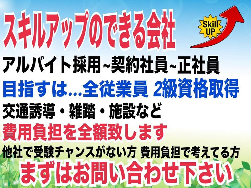仕事内容 ~工事現場での交通誘導や安全確保が主なお仕事~さらに隊員の現場教育指導など ドライバーの方や通行人の方々への安全な誘導、工事現場内の安全確認などをお願い致します。 未経験の方でも先輩スタッフが丁寧に指導しますので、安心してご応募ください。 当社でなら段階を踏んで成長できるステップアップ制度がありますので、高収入も目指せます! ▶あなたのレベルに合わせたスタートが可能! 他社にない警備のお仕事の働き方をどんどん取り入れていきます 残業なし・土日祝休み・日勤は苦手なので夜勤・夜は苦手なので日勤など みんなが働きやすい環境をみんなで作る社風です ▶男女若手~シニアまで幅広いメンバーが活躍中! ★マイカー・バイク通勤OK!直行直帰OK! ★週2日~ ★Wワーク ★勤務日数は相談に応じます ★お休みも多数!プライベートも充実できます 仕事内容▶工事現場での交通誘導や安全確保が主な仕事です 隊員の現場指導もお願いします(資格不問) ドライバーの方や通行人の方々への安全な誘導、工事現場内の安全確認などをお願い致します。 未経験の方でも先輩スタッフが丁寧に指導しますので、安心してご応募ください。 【具体的には】 歩行者に「ご迷惑をお掛けしております」「こちらからお通りください」「足元ご注意ください」など自分の身になってご対応をお願い致します。 旗や誘導棒(赤い棒)で車両に停止や徐行を合図しながら「お願い・ご協力」をしていただきながら、安全にかつスムーズに通行できるように誘導していただきます。 \おススメPOINT/ 工事現場や駐車場、施設警備だけではございません! マラソン大会、サッカーや野球、スポーツ関連のイベントや地域のお祭りにも参加させていただいております♪この前は「プロ野球優勝パレード」にも参加させていただきました。 また当社は地元である神戸須磨シーワールド公認企業! 今注目の成長企業で一緒にスタートしましょう! 資格者・警備経験者の皆様も大歓迎です(待遇面優遇します)