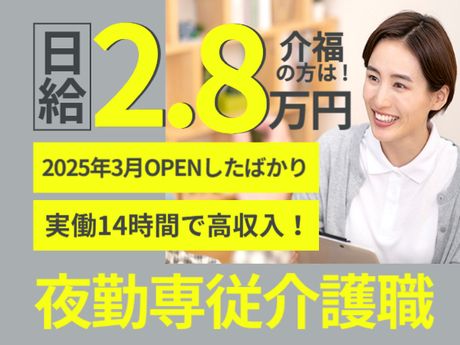 \2025年3月OPEN/実働14時間夜勤★日給2万6600~2万8000円|週2回~|駅~徒歩8分