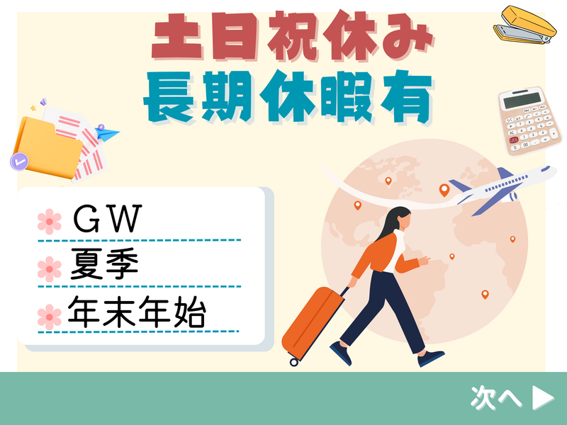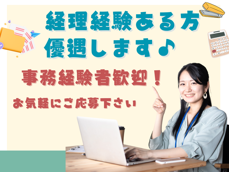 求めている人材 *基本的なPC操作ができる方 *エクセル・ワードの操作ができる方 *経理業務の実務経験のある方優遇 *日商簿記検定3級以上をお持ちの方優遇 *3年以上長く勤務できる方 *やる気がある方 *明るく対応できる方 *向上心のある方