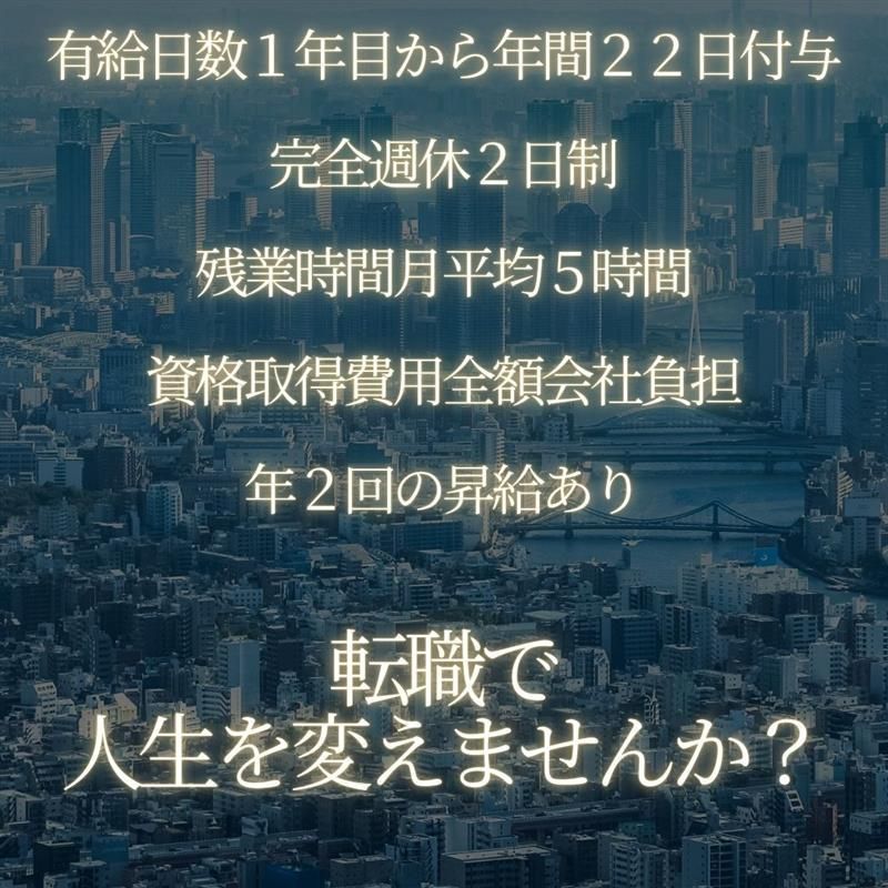 入社お祝い金制度あり。完全週休二日制×年間有給22日付与!