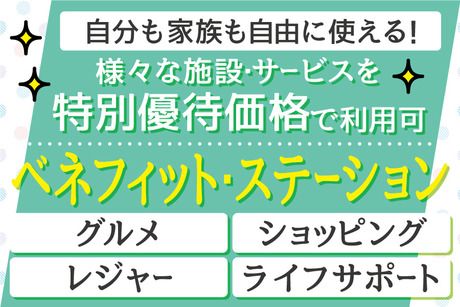 【保険制度】 雇用保険、労災保険、健康保険、厚生年金 待遇・福利厚生 【福利厚生】 ・社会保険完備 ・交通費全額支給 ・有給休暇 ・制服貸与 ・通勤手段応相談 ・正社員登用制度あり ・喫煙室あり ・結婚祝金、出産祝金、扶養こども手当、入学祝金、退職金制度などの福利厚生が充実(規定) ・紹介キャンペーン ※ご紹介くださった方1名につき5万円を進呈(規定) 【ベネフィット・ステーションの利用が可能】 ベネフィット・ステーションとは、 様々なシーンでご利用いただける 総合型福利厚生サービスです。 映画鑑賞やホテルディナー、宿泊施設 などの余暇・レジャー関連をはじめ、 日常で使えるフィットネスや 育児・介護支援、ライフサポートなど 約140万件以上の幅広いメニューを お得な価格で利用できます。 <サービス例> ・全国40,000以上の宿泊施設 ・全国30,000店舗以上の飲食店 ・全国約7,700ヶ所のスポーツクラブ など スタッフさんはもちろん、ご家族の方もお好きなだけ利用できます。