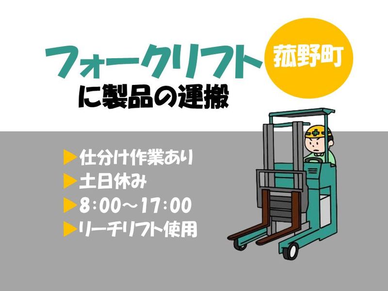 仕事内容 ◆――――✨求人のポイント✨――――◆ ✅ガッツリ稼げる!高時給1500円~ ✅フォークリフトの資格を活かせる 先輩社員が優しくサポートします! ✅20代・30代・40代の女性活躍中! ✅一人で行うモクモク作業 ✅長期で安定して働ける環境です! ✅職場見学OK!事前に職場が見られる! お気軽に問い合わせください! ◆―――――――――――――――――◆ <仕事内容> ★リフト運搬作業 倉庫内にて、リーチリフトに乗ってお仕事していただきます。 パレットに製品(段ボールに入ったハーネスや自動車部品)を 段済みしてフィルム巻き。 ★仕分け作業 製品を行き先ごとに仕分け(重量物はありません) リフトと仕分け作業半々くらいです。 乗りっぱなしではないので ほどよく身体を動かしたい方にピッタリ! ※重量物はありません ■向いてる方 ものづくりに興味ある方や、リフトの運転が好きな方。 ■メリット ものづくり経験やリフトの運転スキル活躍できる職場です。 安定して働けるお仕事!社員さんも優しく快適な環境で作業できます♪ 職場見学もできますので、お気軽にお問い合わせください! ★即日勤務可能