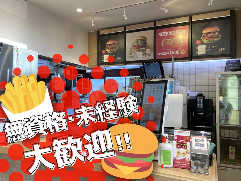仕事内容 \ 見慣れたモスバーガーの業務♪ / \\ 長期も短期もOKです!!! // ■接客 ■商品提供 ■簡単な調理 など ****************** 活躍中のスタッフも未経験スタート! スグに覚えられる内容ばかりなので 未経験の方やブランクのある方も安心♪ ******************